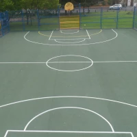 The application of tarmacadam line painting is carried out by sport surfacing contractors to create accurate game lining for a range of activities. Macadam MUGA surfaces are often installed at schools and leisure centres to be used for multiple sports in one place if the organisation has limited outdoor space available.